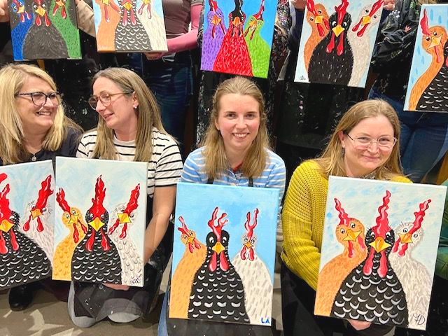 Our painting events are not stuffy formal fine art classes, but alternative fun art social experiences or as we say 'fun art at it's finest'! Join with your friends or take part solo, sip your favourite drink, chill and enjoy painting with one of our talented local artists. It's a colourful , casual party atmosphere where you'll leave your cares behind and end up with a one-of-a-kind painting created by you.